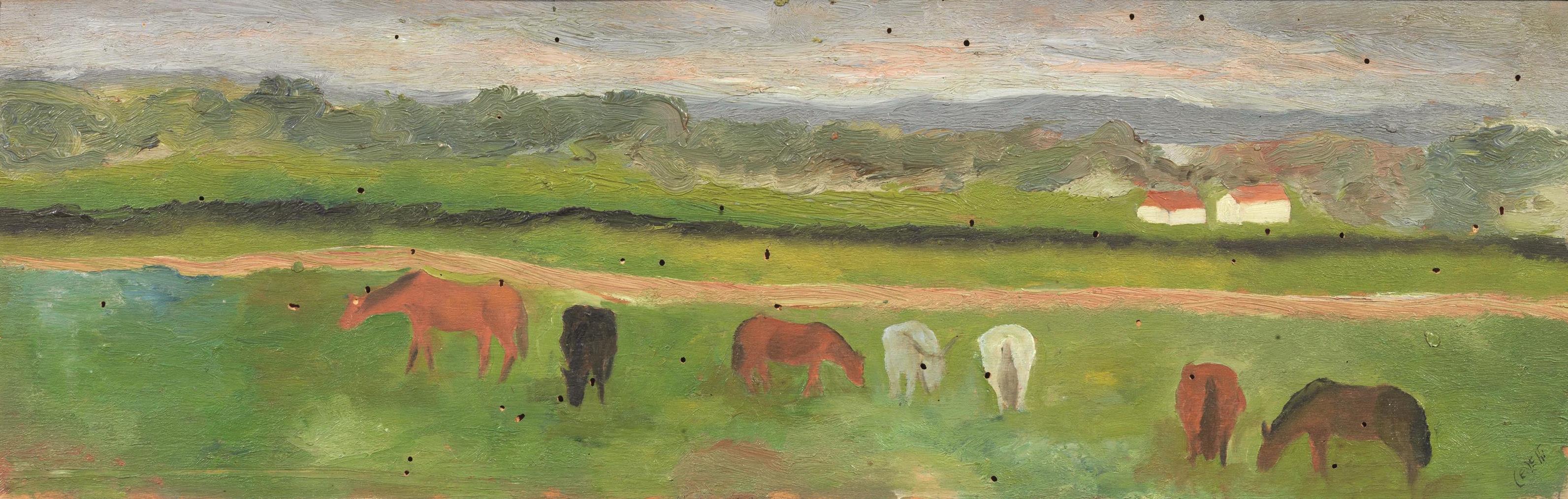 Giuseppe Cesetti (Tuscania 1902 - 1990) CAVALLINI AL PASCOLO olio su...