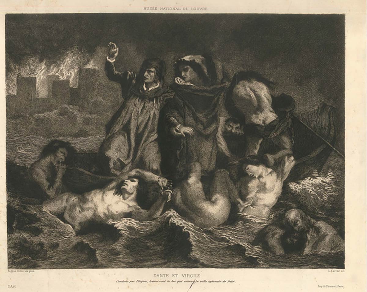 Opera realizzata da Lucian Carred da Eugène Delacroix nel 1886. Acquaforte su carta. Passepartout incluso. Prova d'autore, bon à tirer.