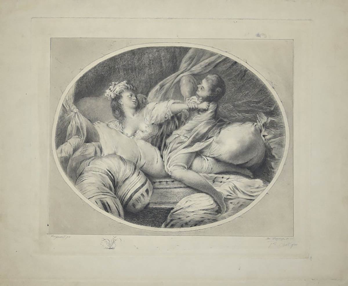 Impressione molto bella e fresca che rappresenta un'importante opera d'arte realizzata dall'artista rococò francese Jean-François Fragonard nel XVIII secolo. Le figure sono molto eleganti e affascinanti e mostrano una grande sensualità.