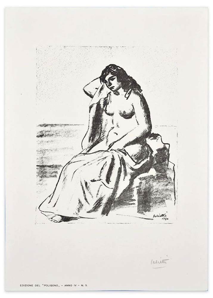 "Modella" è una bellissima litografia in bianco e nero su carta, realizzata dall'artista italiano Alberto Salietti (Ravenna 1882 - Chiavari 1961) e pubblicata da Le Edizioni del Poligono, Milano nel 1930. Firmata a matita sul margine inferiore. Firmata e datata su lastra. Il nostro esemplare è non numerato. In perfette condizioni. Rappresenta una modella seduta, ritratta in chiave classica.