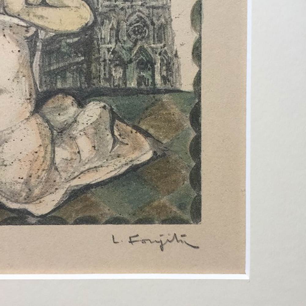Firmato dall'artista. Prova d'autore. Editore: Paris, Pierre de Tartas Editions Rombaldi. Una delle 18 belle xilografie realizzate da Foujita per il libro “Petits métiers et gagne-petit” di Albert Fourniet, pubblicato da Rombaldi nel 1960. Include passepartout. Bibliografia: Cat. Guisson p. 529 n. 60-08