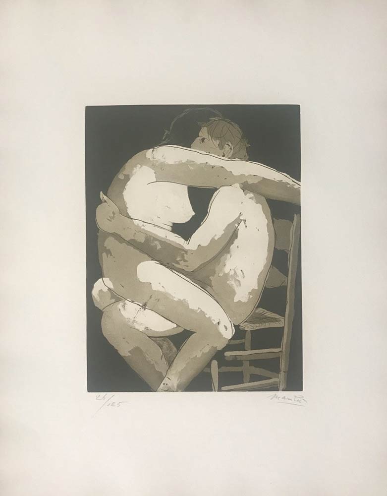 Il tema degli innamorati è ricorrente nel lavoro dell'artista. Le figure sono ritratte in abbracci teneri e appassionati, spesso per metà coperti da abiti sottili e morbidi.