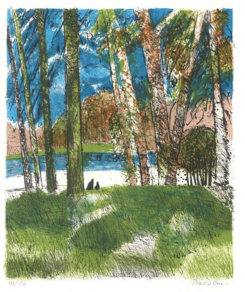 "Nel bosco" è una bellissima litografia a colori di Guy Bardone.