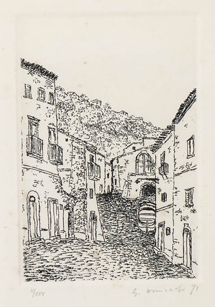 Un scorcio di paese, firmato e datato a mattita in basso a dastra: G. Omiccioli 1971, tiratura II/XXX.