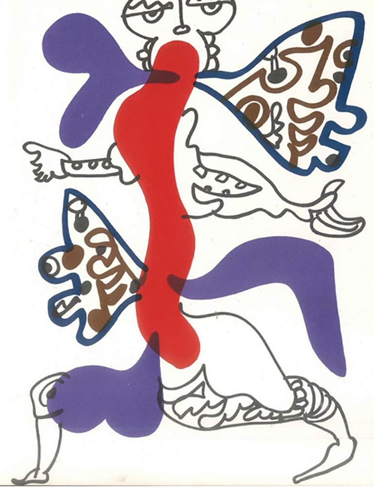 Opera d'arte originale realizzata da Charles Lapicque nel 1974. Litografia ai colori. Buone condizioni. Stampata da Mourlot, Francia. Questa litografia è stata realizzata dall'artista nel 1974 per la rivista "XXe Siècle -Le Surrèalisme" II - XLIII - 74. L'opera rappresenta una figura astratta con una lunga lingua di fuoco.