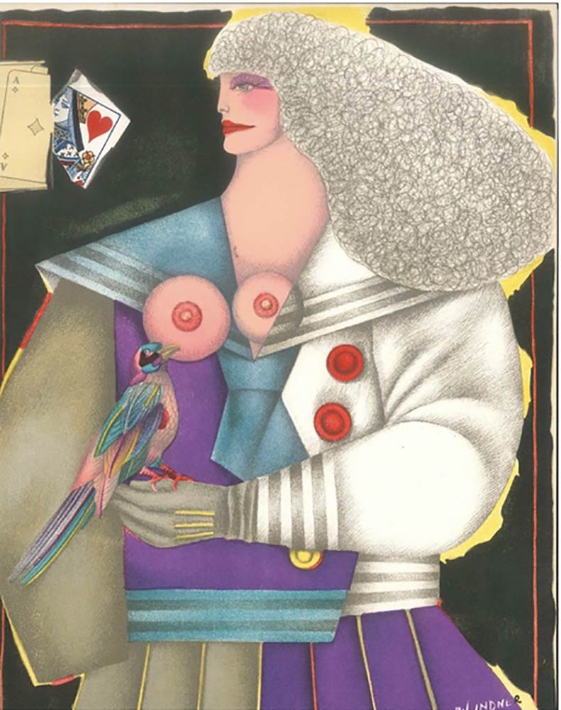 Opera realizzata da Richard Lindner nel 1974. Litografia a colori. Buone condizioni. Stampato da Mourlot, Francia. Questa litografia è stata realizzata dall'artista nel 1974 per la edizione della rivista "XXe Siècle - Le Surrealisme" I - XLII - 74. L'opera rappresenta un colorato ritratto di una donna con un pappagallo.