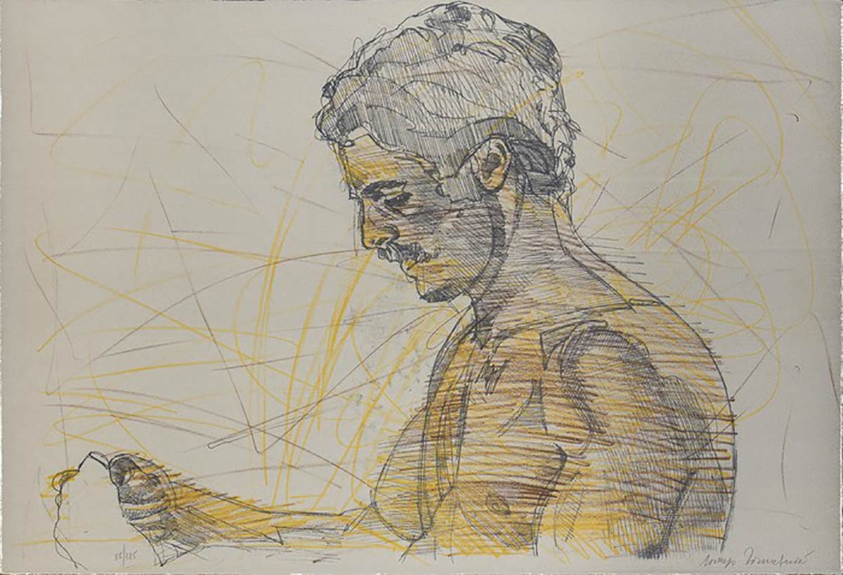 Litografia su carta grigia