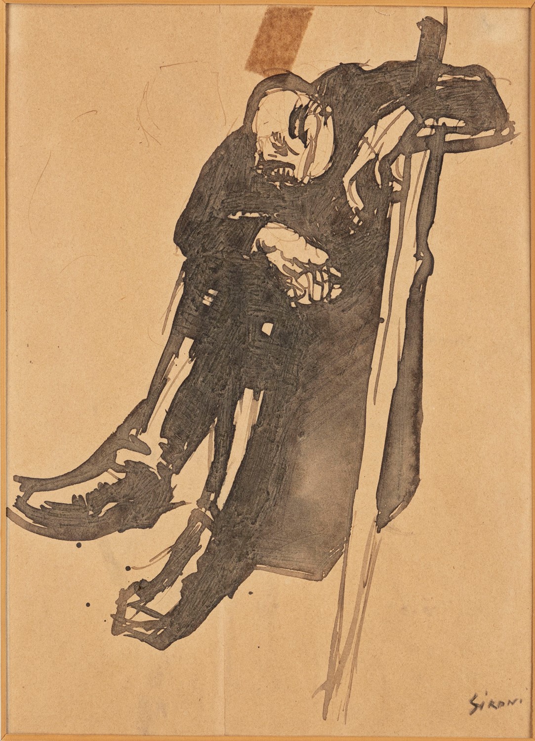 Mario Sironi (Sassari 1885-Milano 1961) - Studio per l’illustrazione UN MONITO / BISMARK: - BADA LAGGIù! FINIRAI COL LUCIDARE LE SCARPE ANCHE A QUELLI...