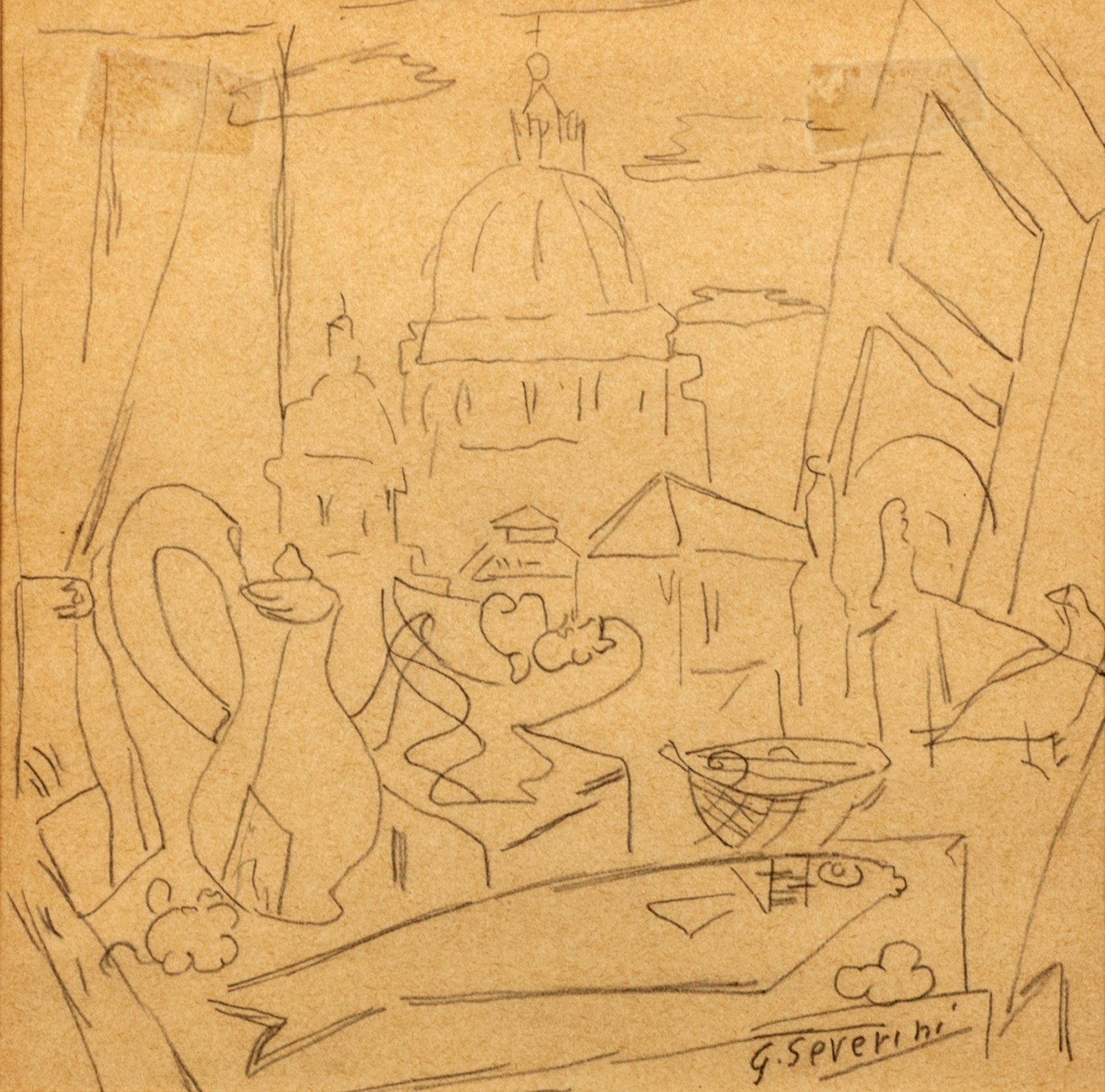 Gino Severini (Cortona 1883-Parigi 1966) - Natura morta davanti alla cupola di San Pietro, 1943