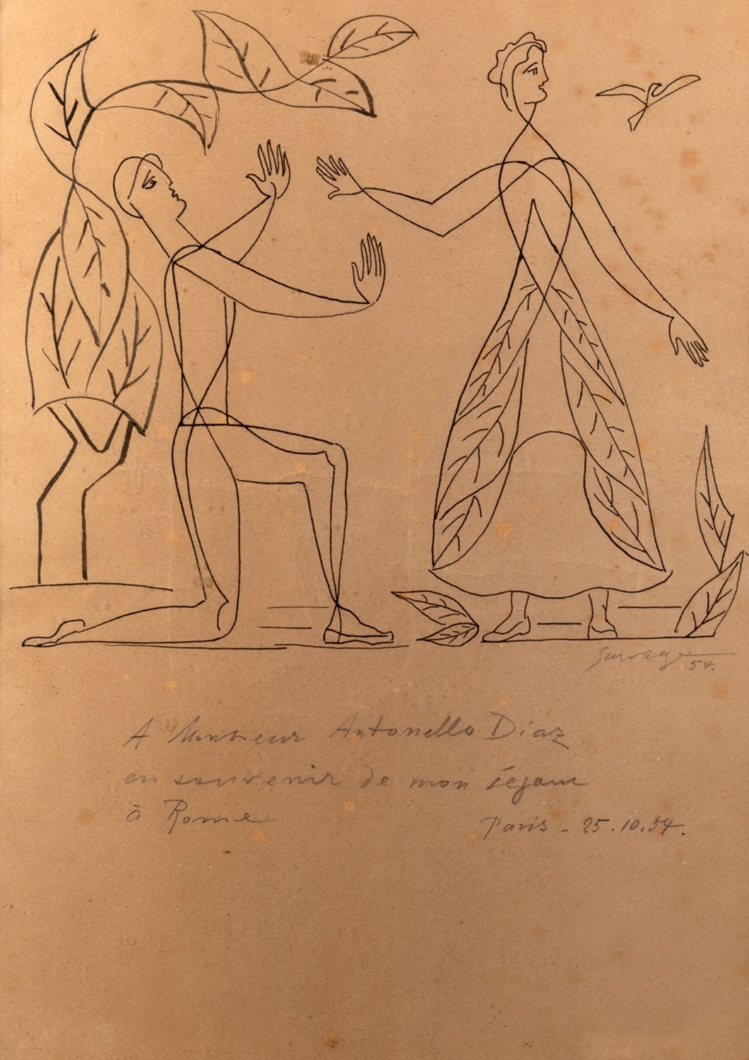 Al centro una dedica ad personam datata Paris 25.10.54