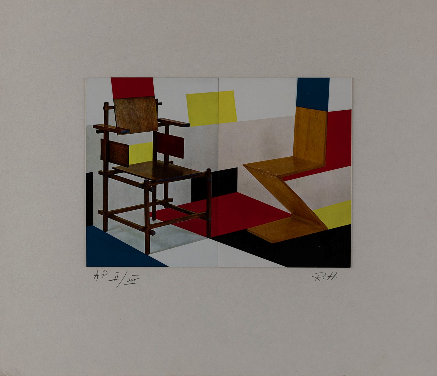 h. Richard Hamilton, Senza titolo, serigrafia a colori su cartoncino, cm 30 x 35. Firmato in basso a destra: R. M. Numerato in basso a sinistra