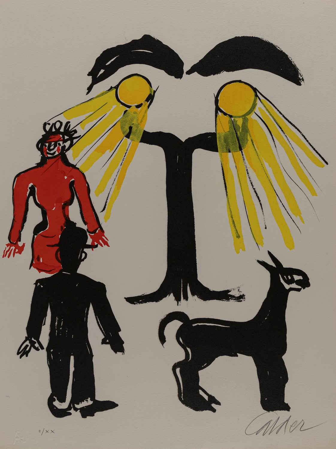 e. Alexander Calder, Senza titolo, litografia su carta, cm 50 x 37,5. Numerato in basso a sinistra. Firmato in basso a destra: Calder