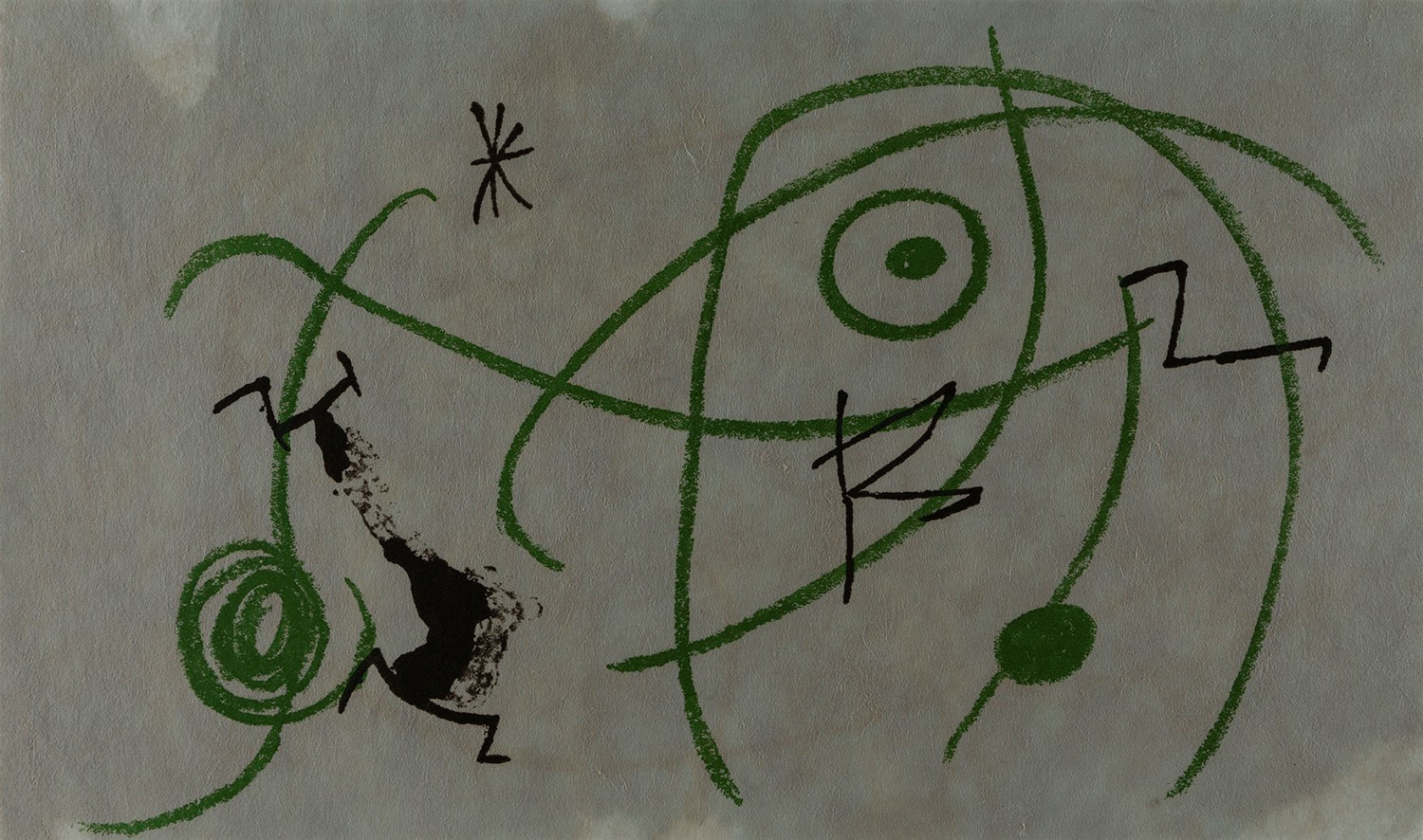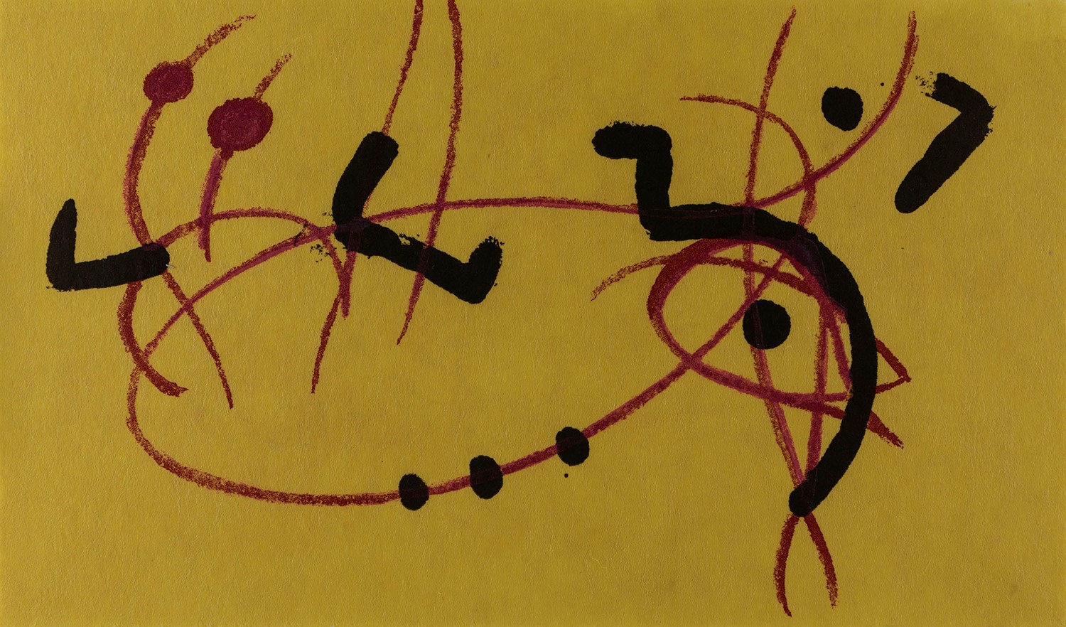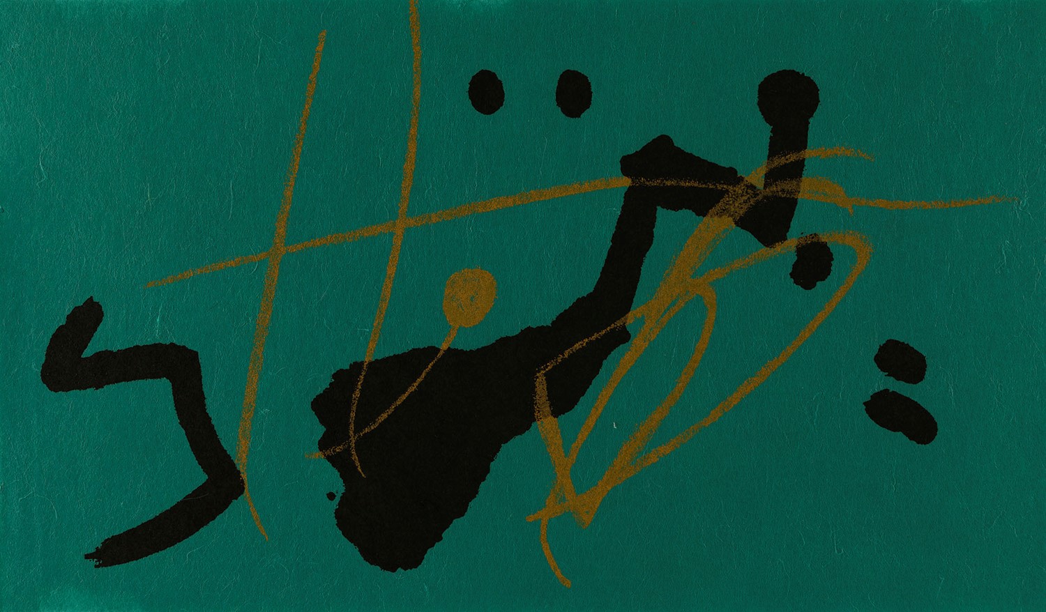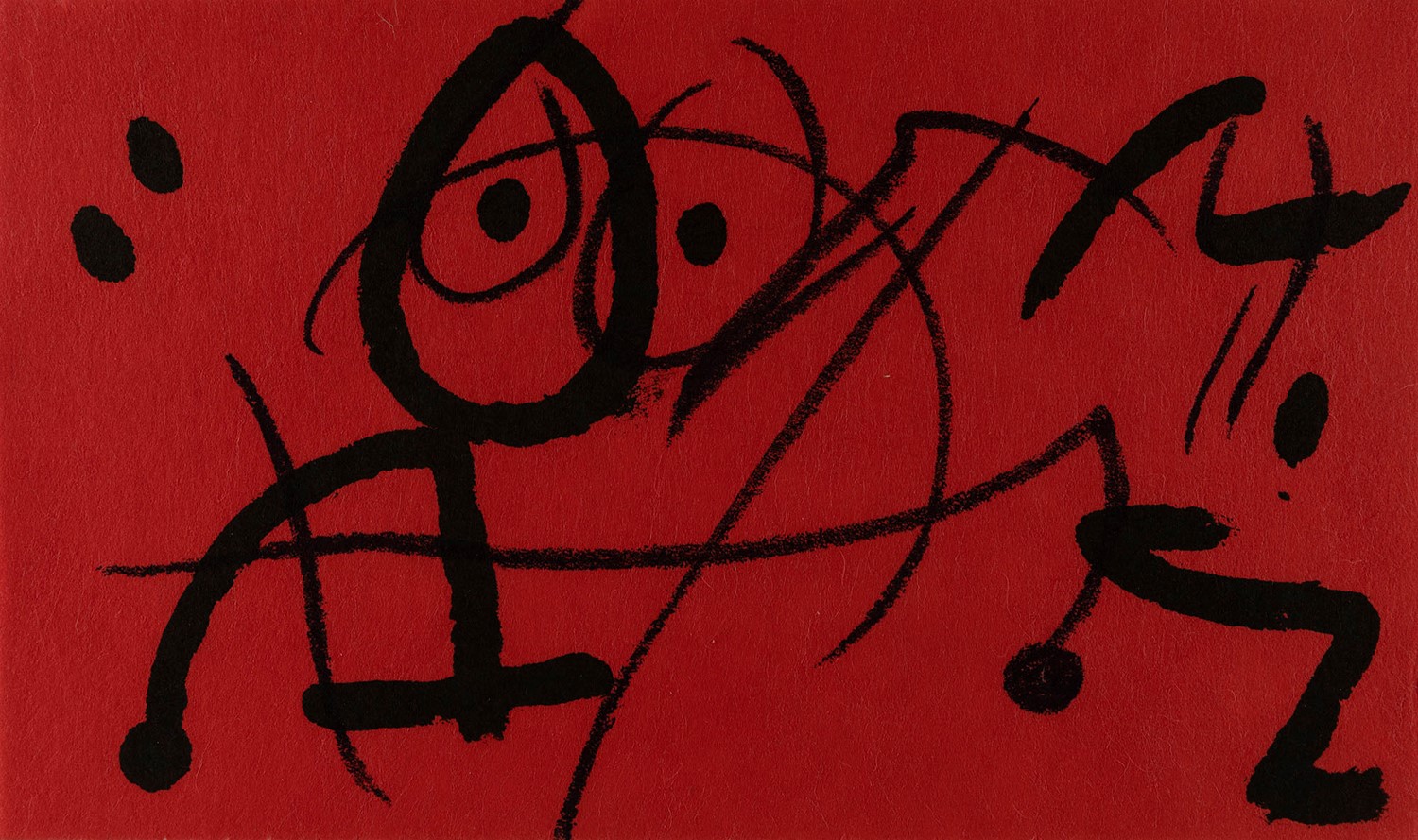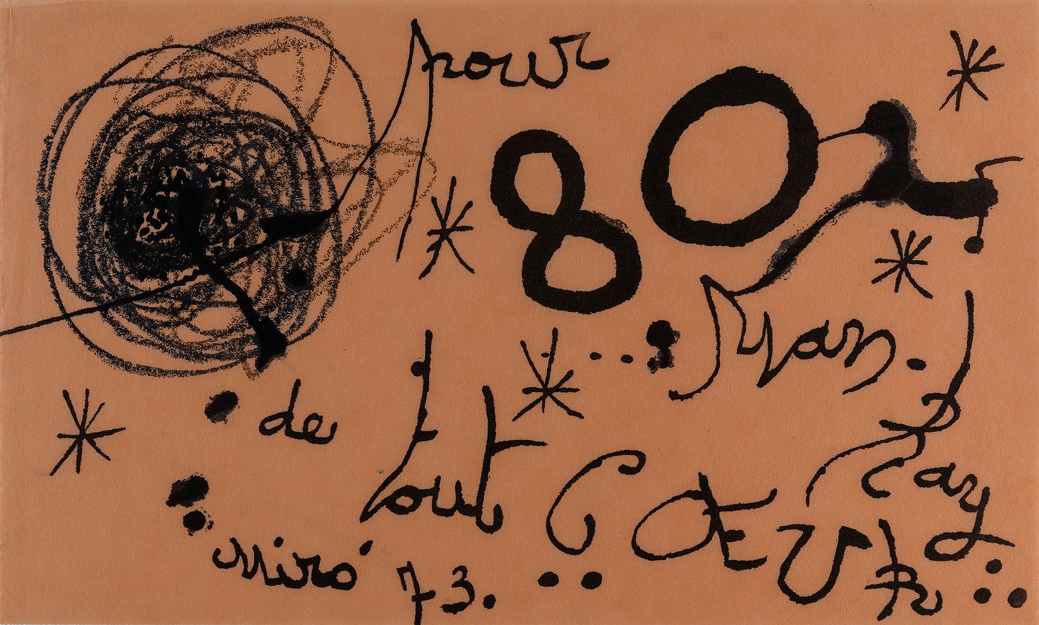 t. Joan Mirò, Pour Man Ray de tout coeur, 1973, litografia a colori su carta di riso, cm 29,2 x 49,5