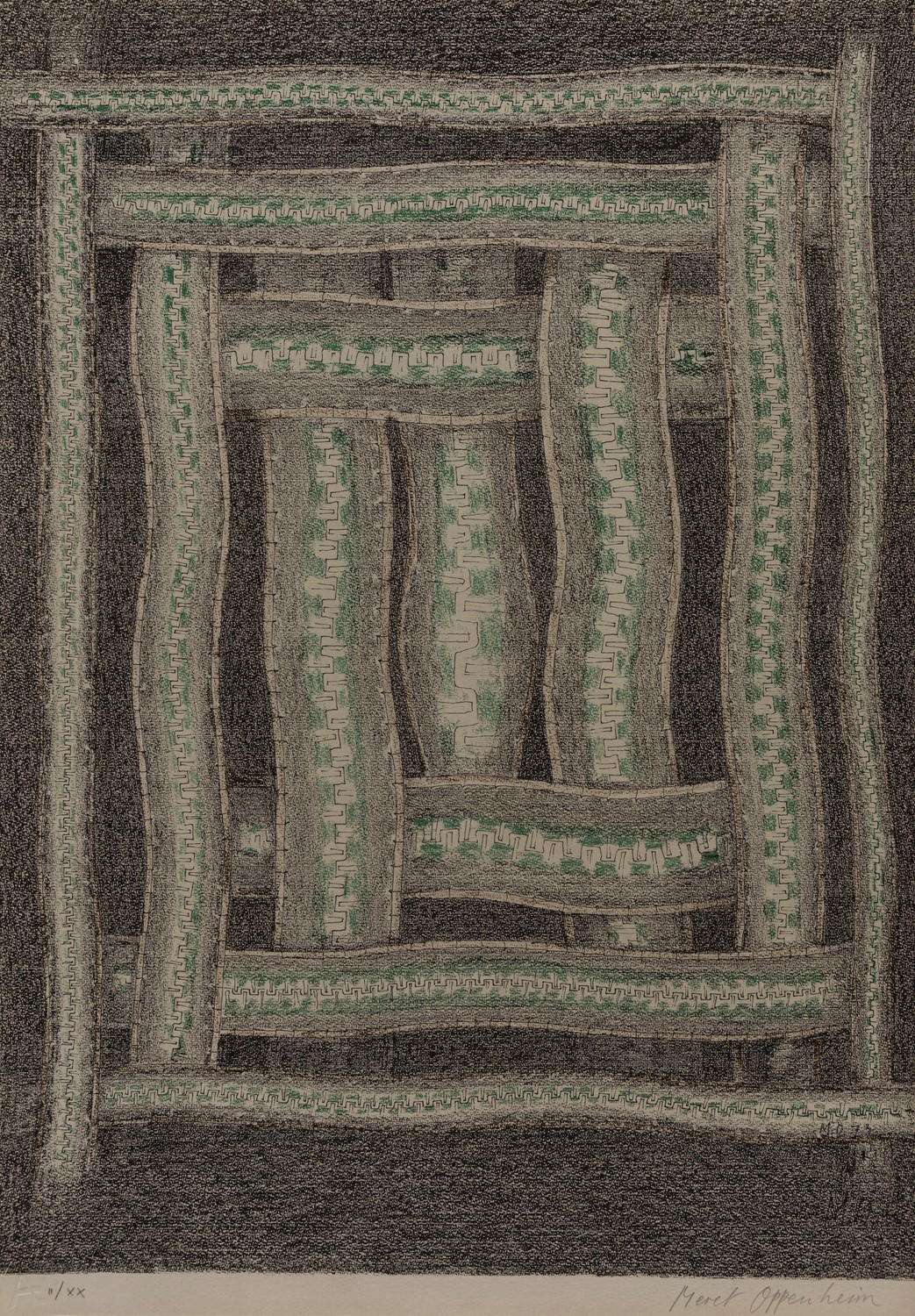 m. Meret Oppenheim, Senza titolo, litografia su carta, cm 50 x 35. Numerato in basso a sinisra. Firmato in basso a destra: Meret Oppenheim