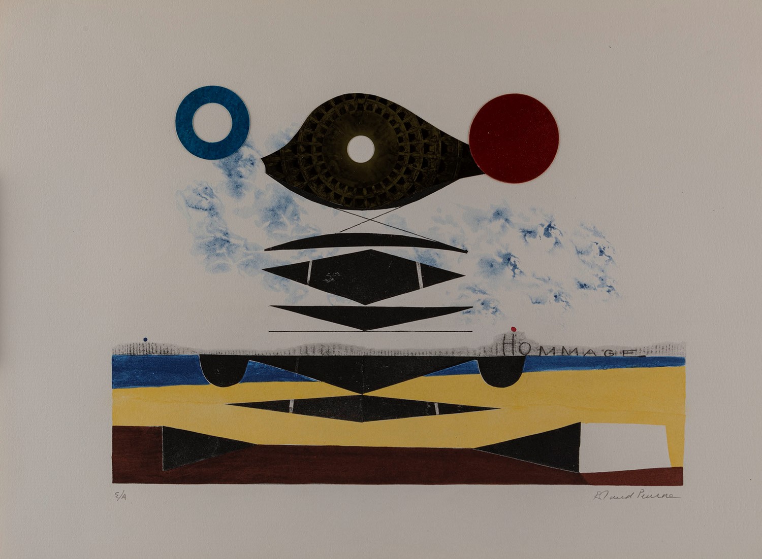 l. Ronald Penrose, Senza titolo, collage e serigrafia su carta, cm 35 x 50. Firmato in basso a destra: Ronald Penrose. Numerato in basso a sinistra