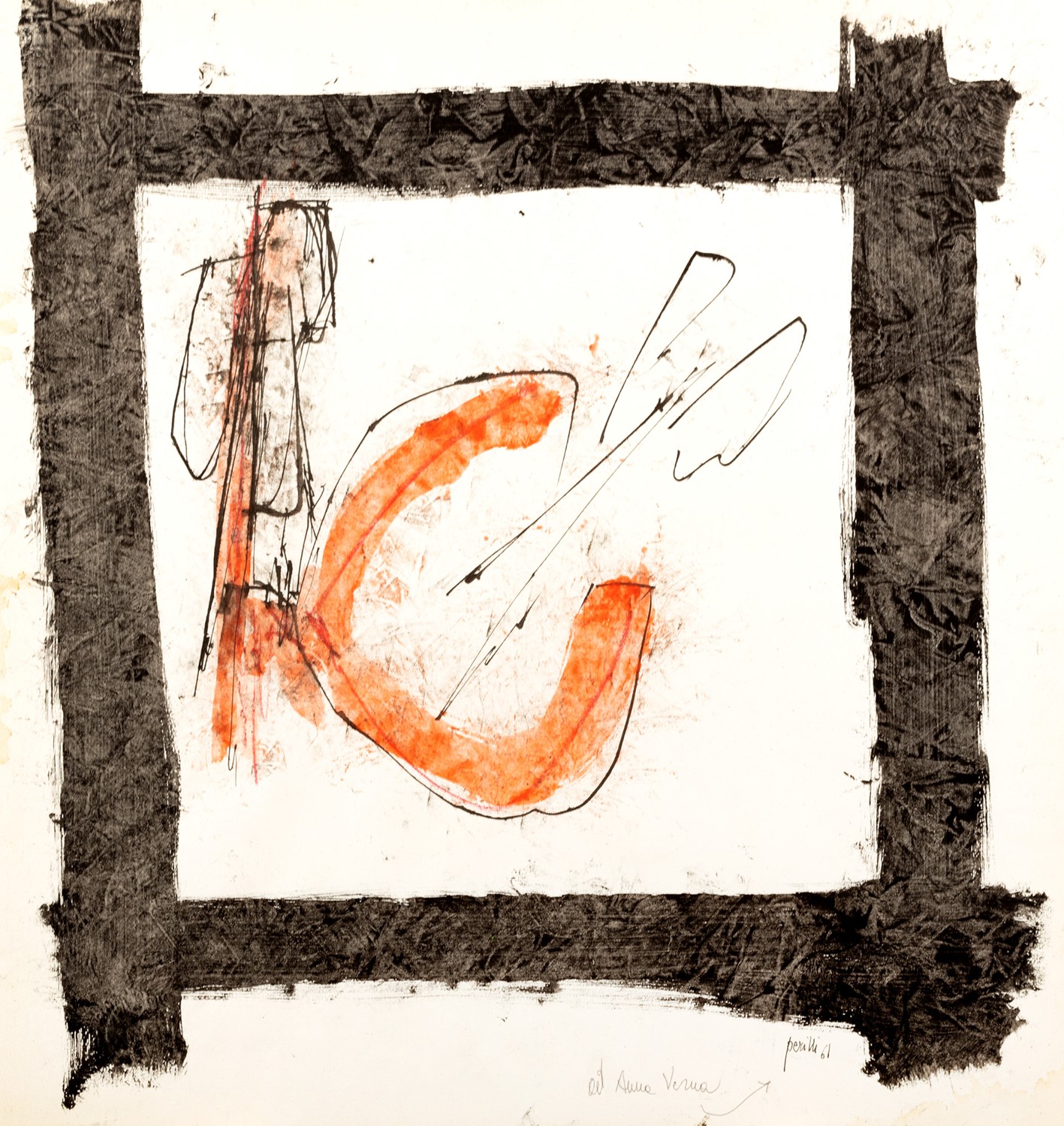 Firmato in basso a destra: Perilli 61 con una dedica ad personam