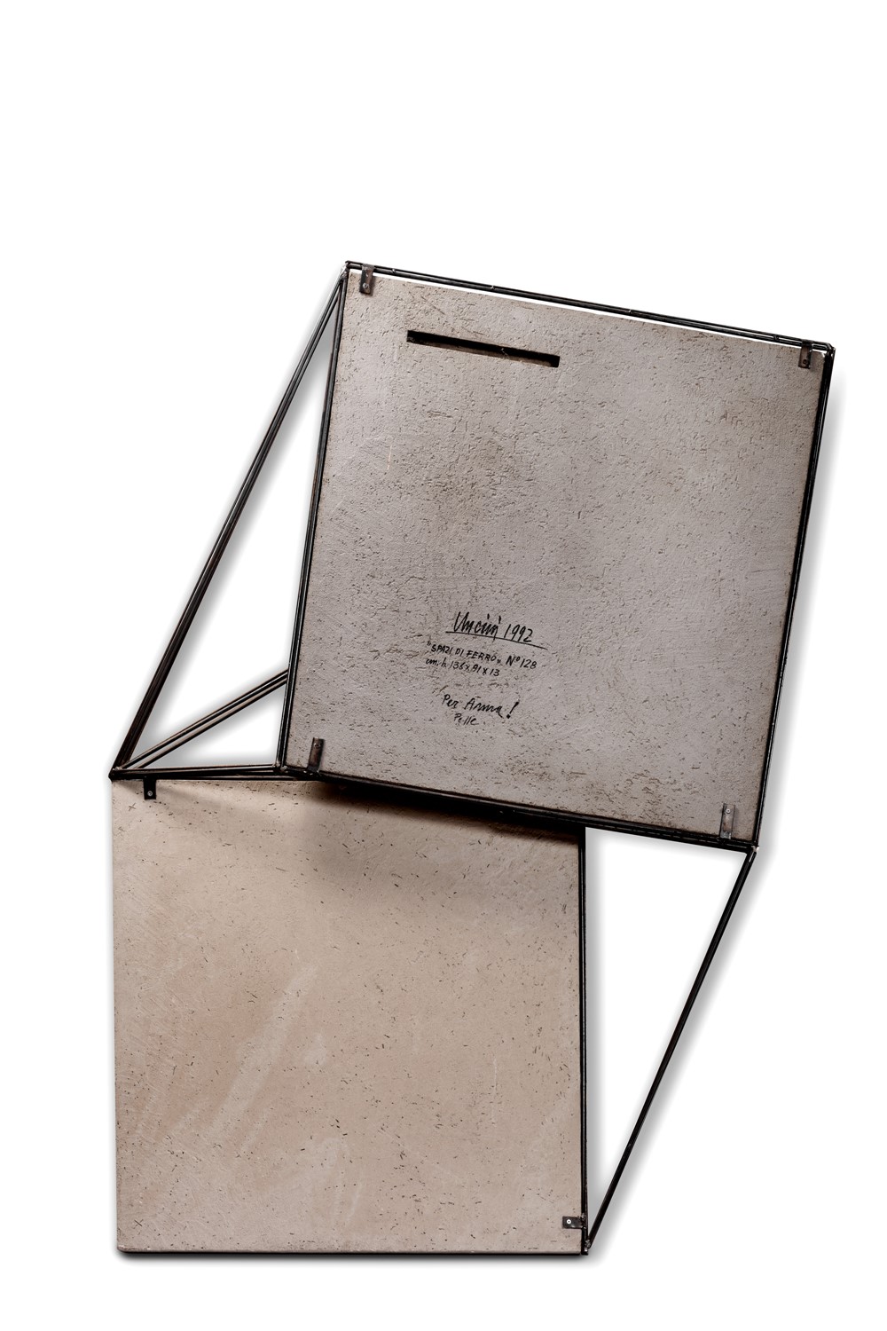 Firmato al verso: Uncini 1992 Spazi di ferro n°128 con una dedica ad personam