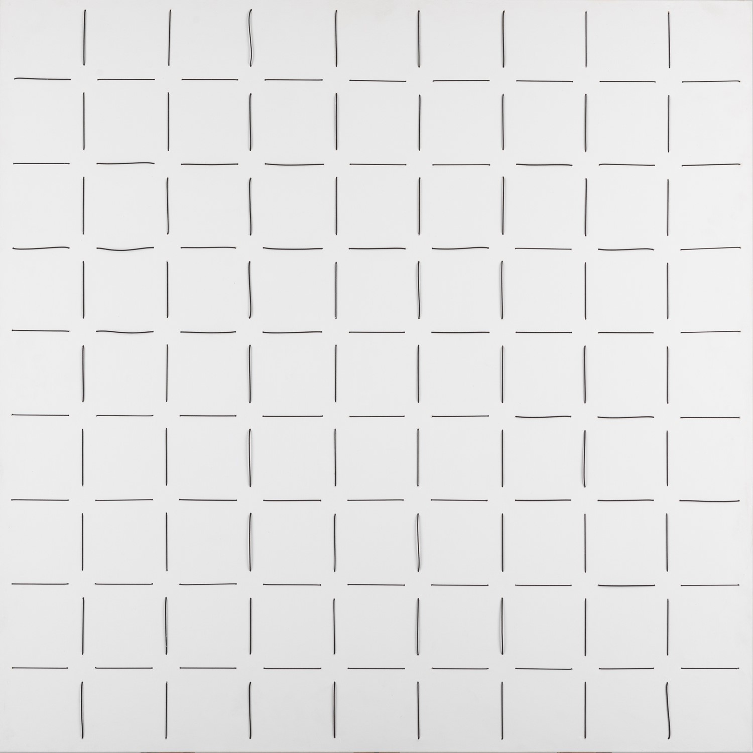 tecnica mista (elastico nero, acrilico su pannello montato su plexiglas)