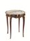 Due tavolini da appoggio, Francia, fine sec. XIX, in mogano con applicazioni in bronzo dorato, uno con piano sagomato in breccia di marmo, alte gambe desinenti con protomi umane, l'altro con piano intarsiato a motivo floreale, un sottopiano e lunghe gambe mosse, diam. cm 68 e cm 48, alt. cm 79 e cm 72 (2)