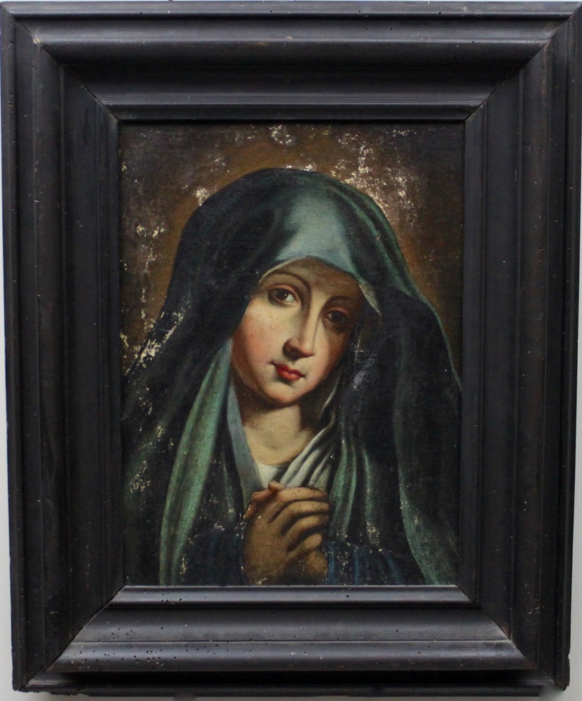 La tela trova il suo riferimento preciso nell’omonima opera di Giovanni Battista Salvi detto il Sassoferrato (Sassoferrato 1609 - Roma 1685), più volte ripetuta dall’artista e dalla sua bottega