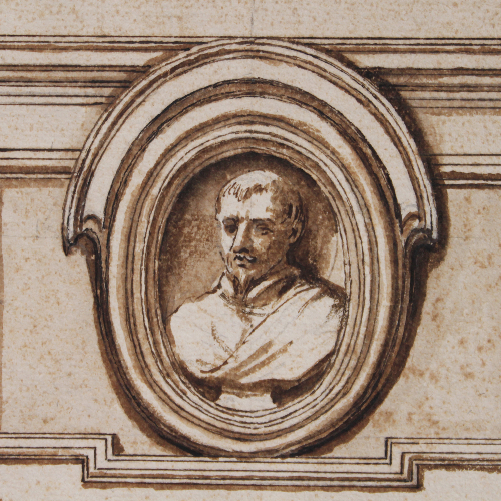 "Architectural project with a bust of a man"