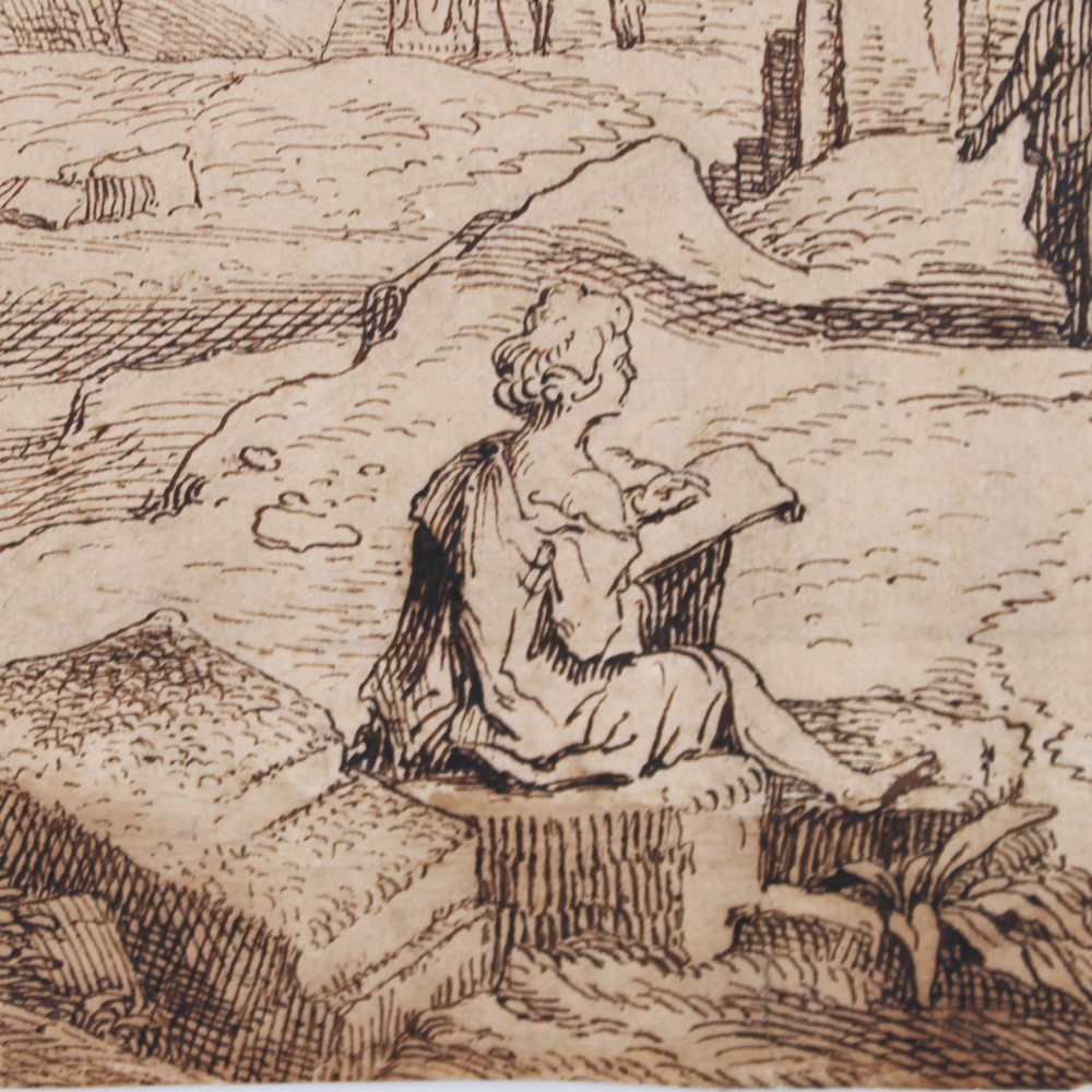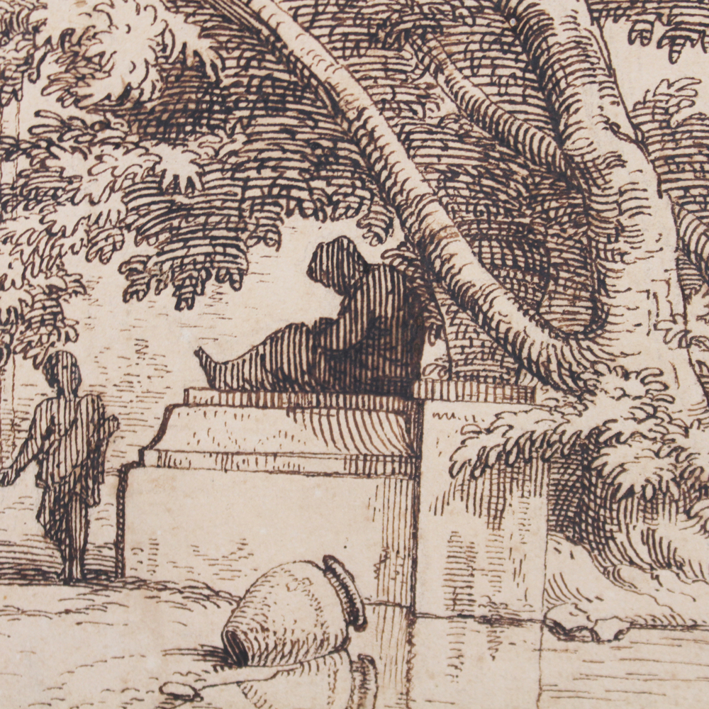 "Paesaggio alberato con figure immerse nelle rovine classiche"
