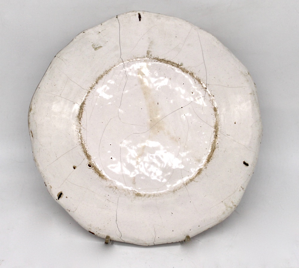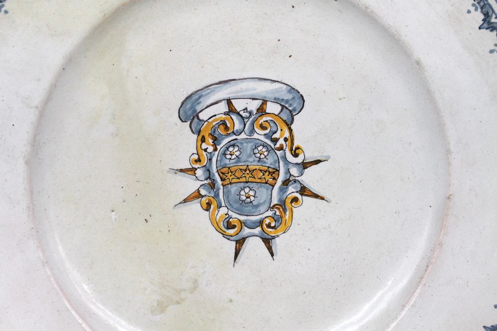A pair of majolica serving plates with noble coat of arms in the center