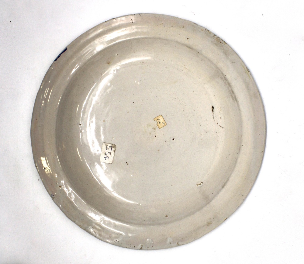 Piatto in ceramica bianca smaltata decorata con pavone al centro