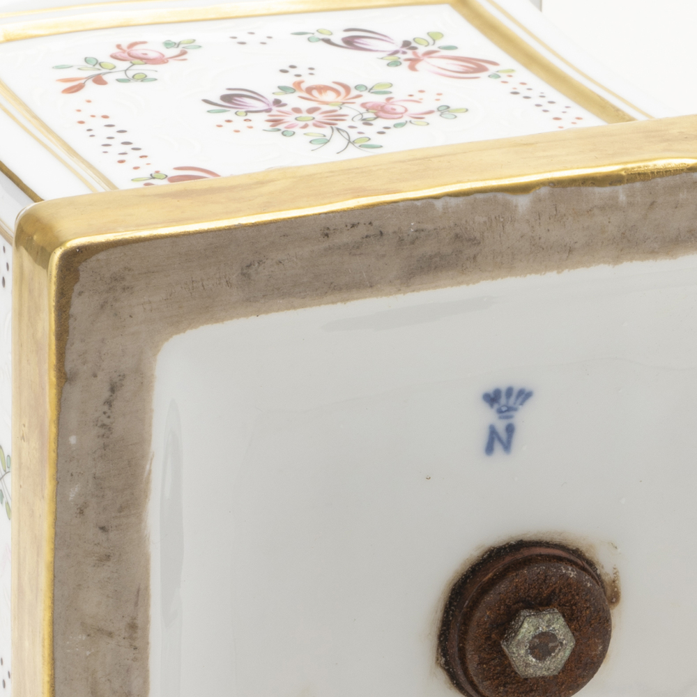 Vaso a coppa in porcellana bianca con finiture in oro e stemma nobiliare
