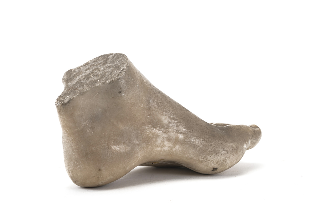 Scultura in marmo che riprende un frammento di statua romana