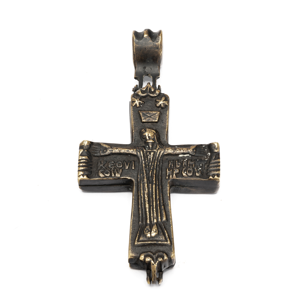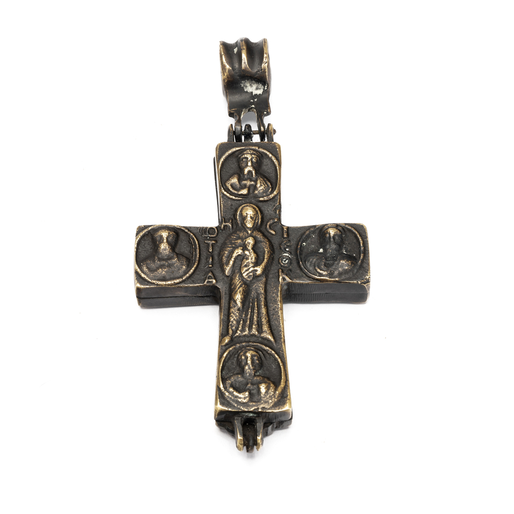 Enkolpion, detto anche Engolpion o Encolpion, è una croce apribile destinata a contenere le reliquie. Al centro, la croce da un lato riporta la figura della Vergine in piedi con Gesù bambino, alla terminazione dei quattro bracci i ritratti dei quattro evangelisti, mentre dall’altra parte è riportata l'immagine di Gesù Cristo