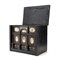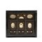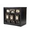 An ebonized wood cabinet with three drawers with golden damask motifs and mother-of-pearl plaque