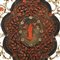 Esemplare in bronzo dorato e traforato, con coralli sagomati incastonati e al centro la figura dell'Immacolata