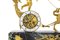 Importante e raffinato orologio da appoggio Impero francese, in forma di cocchio classico trainato da un cavallo, con Amore nei panni dell’auriga. Cassa in marmo verde portoro, pregevoli bronzi dorati al mercurio, quadrante in smalto bianco ricavato dalla ruota del carro. Fregi finemente cesellati, in bronzo dorato al mercurio, raffiguranti farfalle ed un arco con le frecce, decorano il fronte della base. Firmato sul quadrante Vaillant à Paris. Ore in dodici, in numeri romani. Movimento parzialmente a vista, attraverso i raggi della ruota, suoneria delle ore e delle mezze. Per alcuni soggetti analoghi, si veda in letteratura "Pierre Kjellberg, La Pendule Française du Moyen Age au XXème Siècle", p. 417.