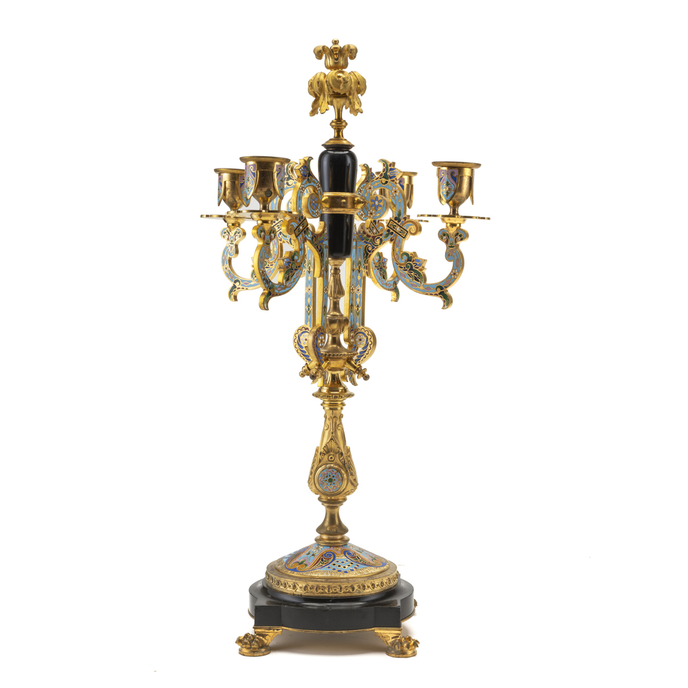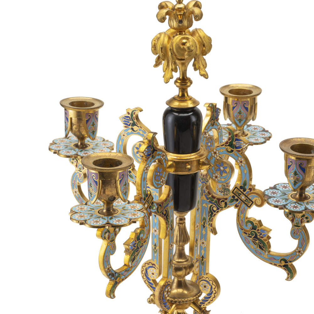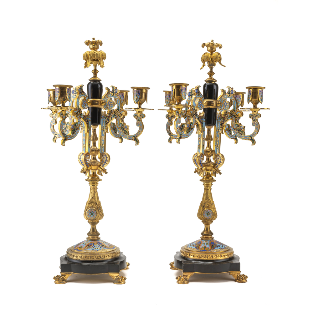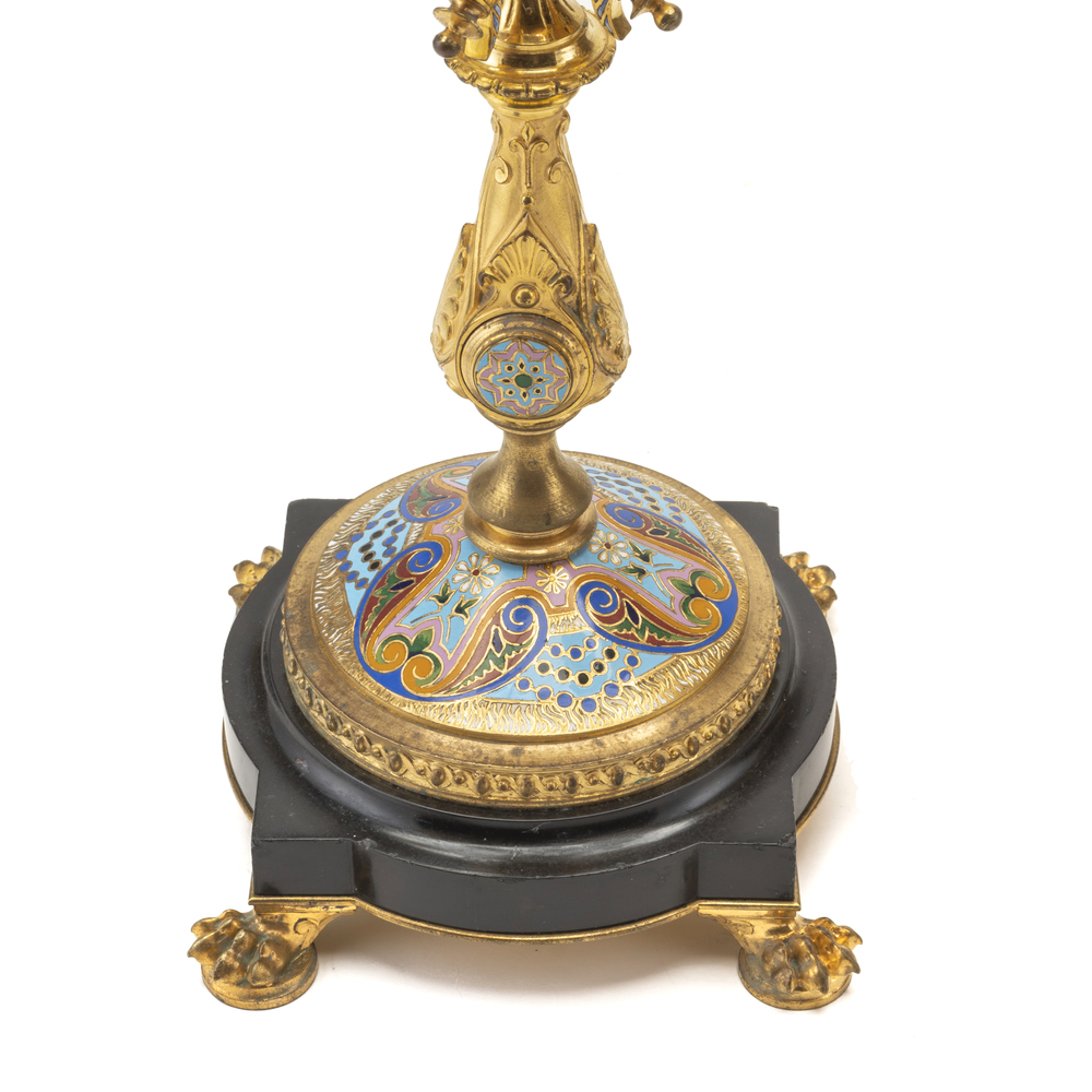 Coppia candelabri in marmo nero del Belgio e bronzo dorato