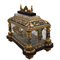 A rock crystal jewelery box, bronze frame with enamelled decorations and parts in lapis, uprights decorated with leaf motif