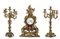 Trittico composto da una pendola da tavolo e due candelabri in bronzo dorato
