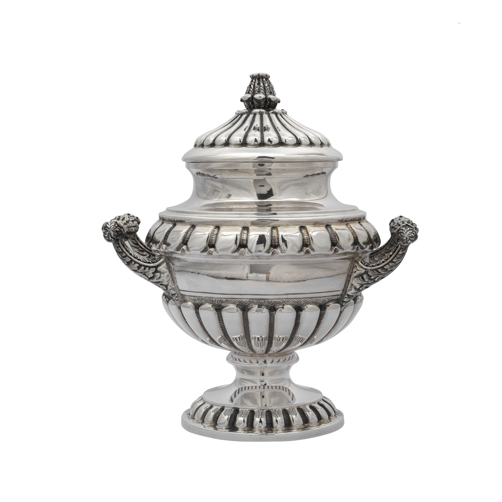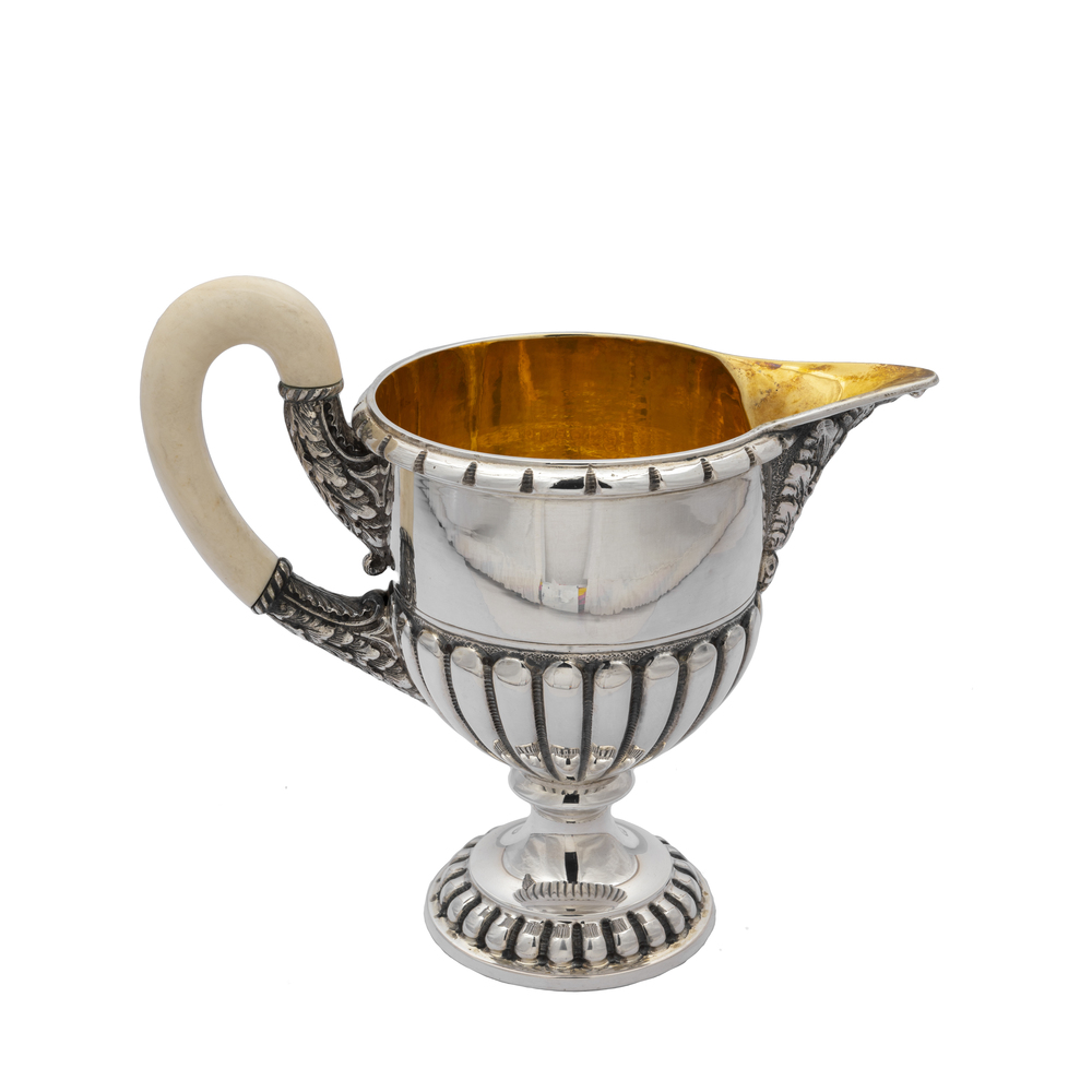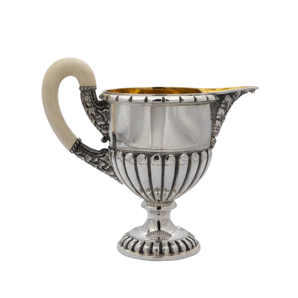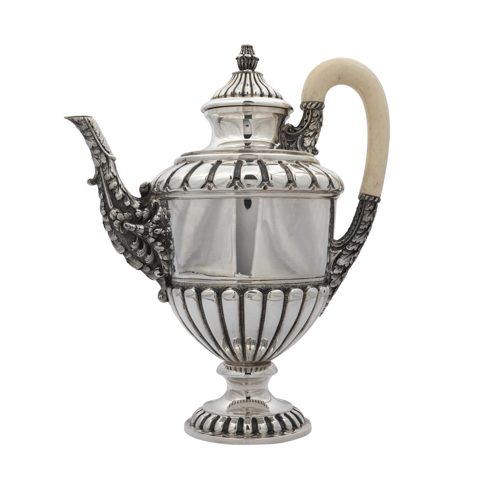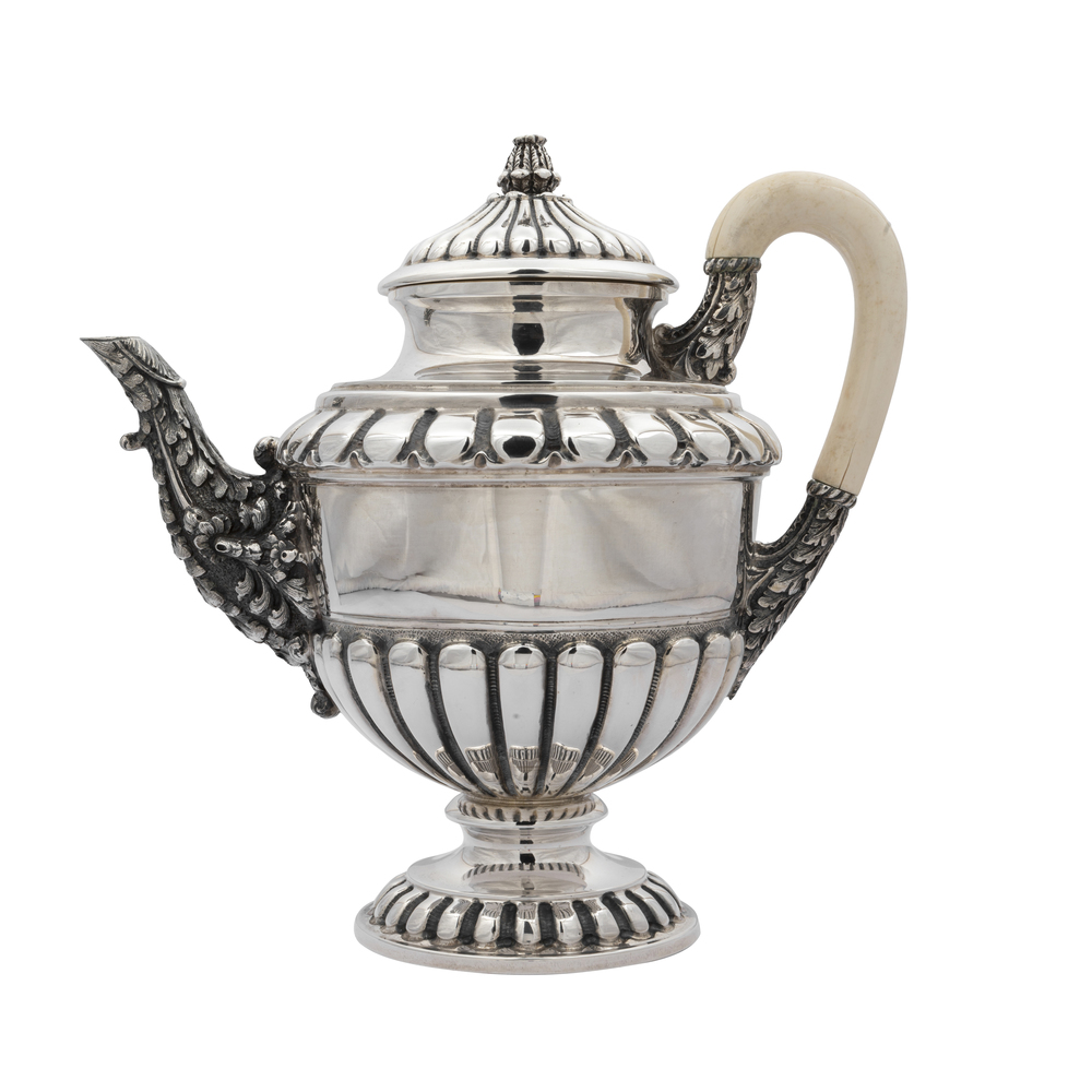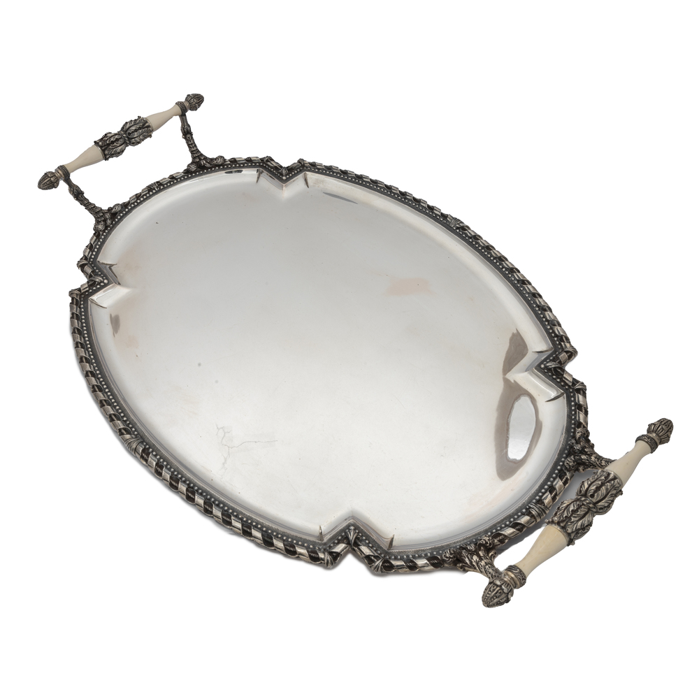 Servizio di quattro pezzi in argento con vassoio