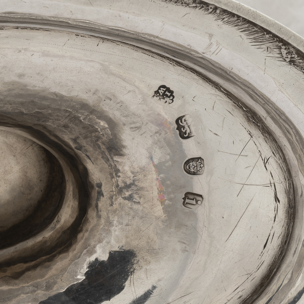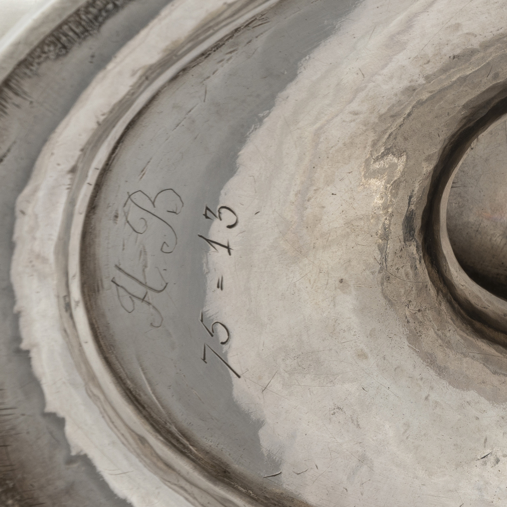 A silver centerpiece with noble coat of arms
