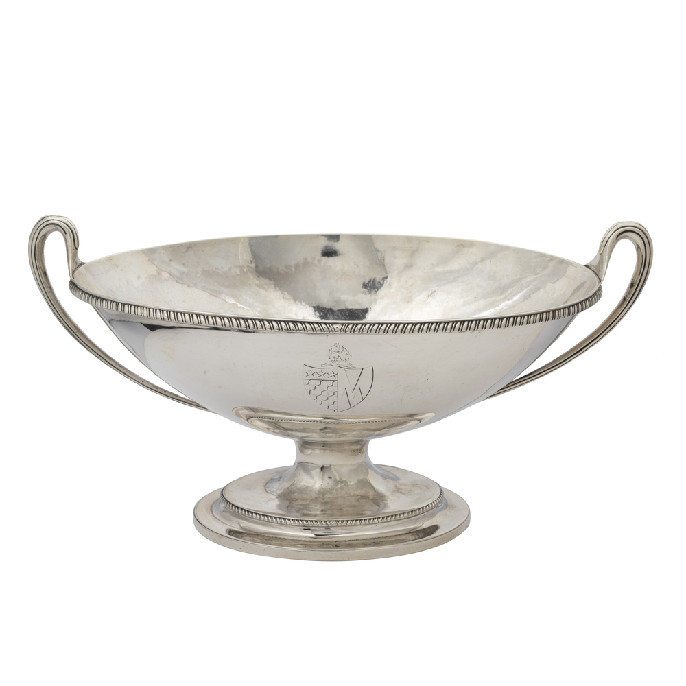 Centrotavola in argento biansato con stemma nobiliare