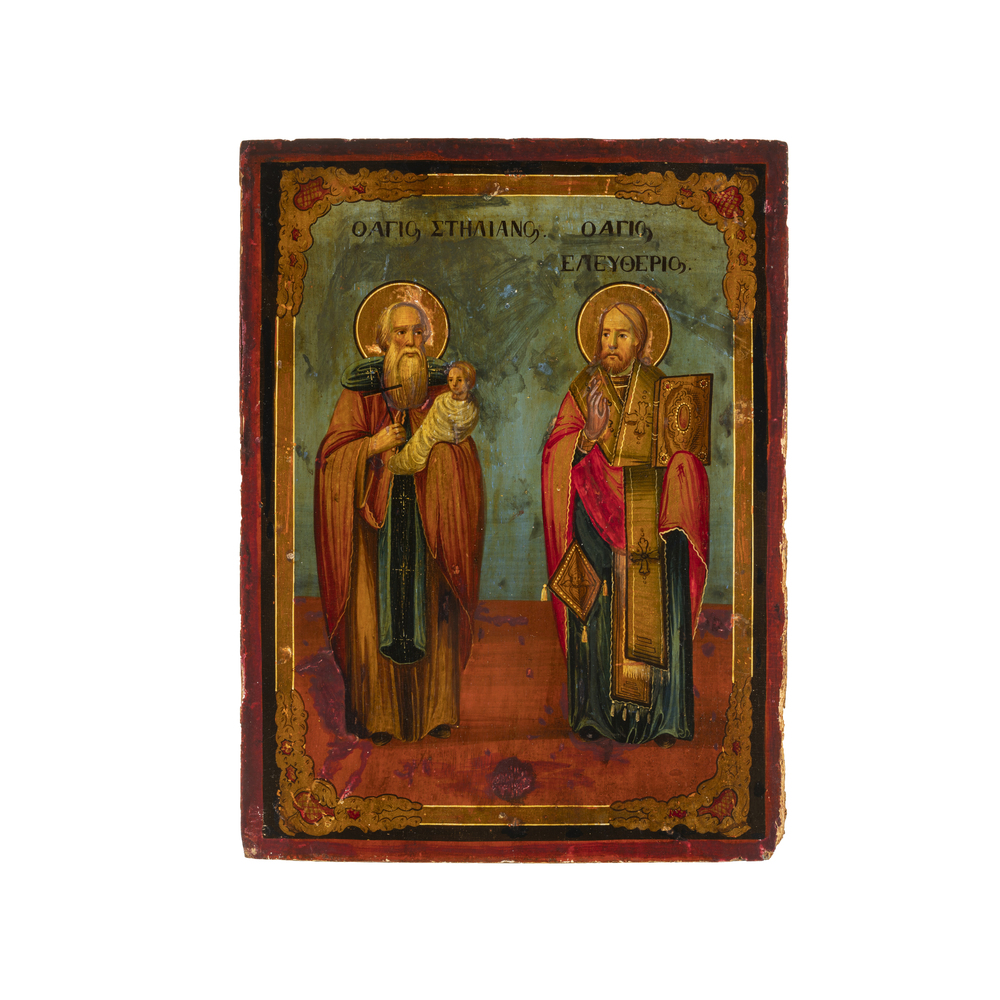 La tavola, con raffigurati i Santi Stiliano ed Eusebio, mostra i tratti distintivi della pittura di icone della scuola bulgara: la cornice decorata con foglia oro e motivi ornamentali agli angoli, i bordi rosso e nero, il fondo azzurro e una resa dei personaggi che unisce alla tradizione ortodossa una certa influenza dell'arte occidentale. La riza in argento sbalzato non riporta punzoni