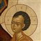 Questa grande tavola, dall'intensa luminosità accentuata anche dal levkas di fondo, è un esempio di pittura all' “antica”, con il recupero, cioè, dei modelli della tradizione iconografica: la limpidezza del tratto, la delicatezza della resa dei volti, la spigolosità delle pieghe dei manti decorati con la crisografia rimandano direttamente agli esempi tratti dalla pittura sacra bizantina mediata, però, dal sentimento artistico delle prime scuole della Russia