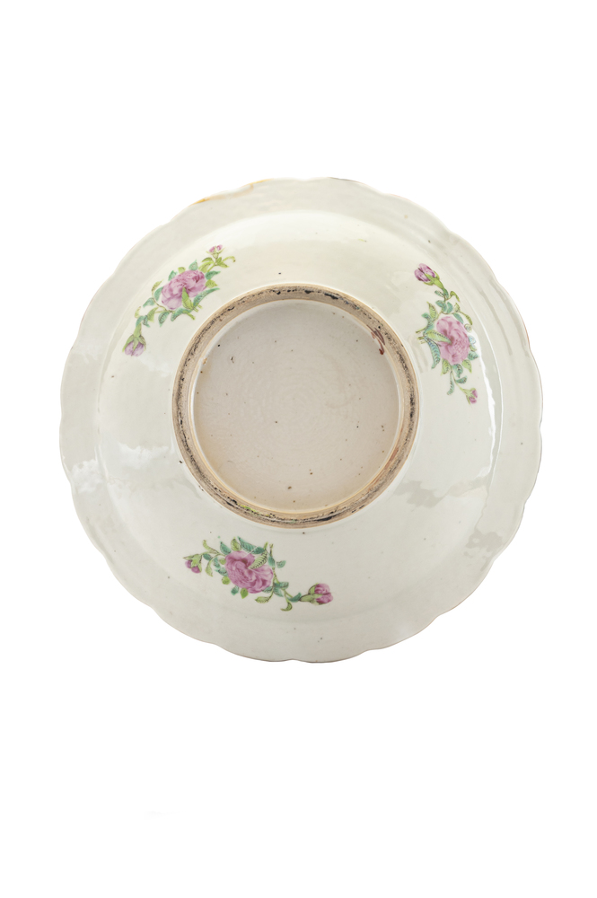 Coppia di piatti in porcellana decorati con fiori e farfalle