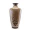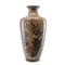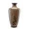 Pair of large cloisonné enamel vases with decorations of flowering branches on a hazelnut-colored background, ovoid-shaped with flared mouth on the bottom signature on applied plaque