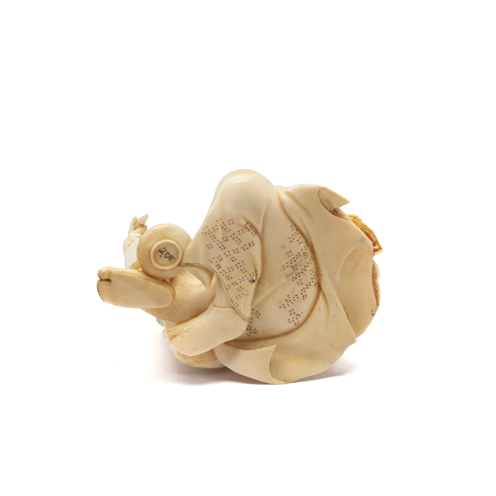 Ivory okimono representing a painter with geisha