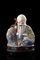 Figura in porcellana policroma raffigurante Shoulao assiso, base in legno