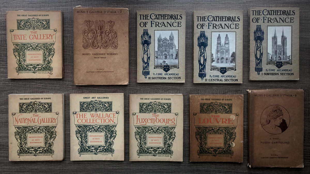 - 5 volumetti della raccolta 'The great galleries of Europe' edita da Cassell & Company nel 1907 (The National Gallery; The Tate Gallery; The Wallace Collection; The Luxembourg; The Louvre)