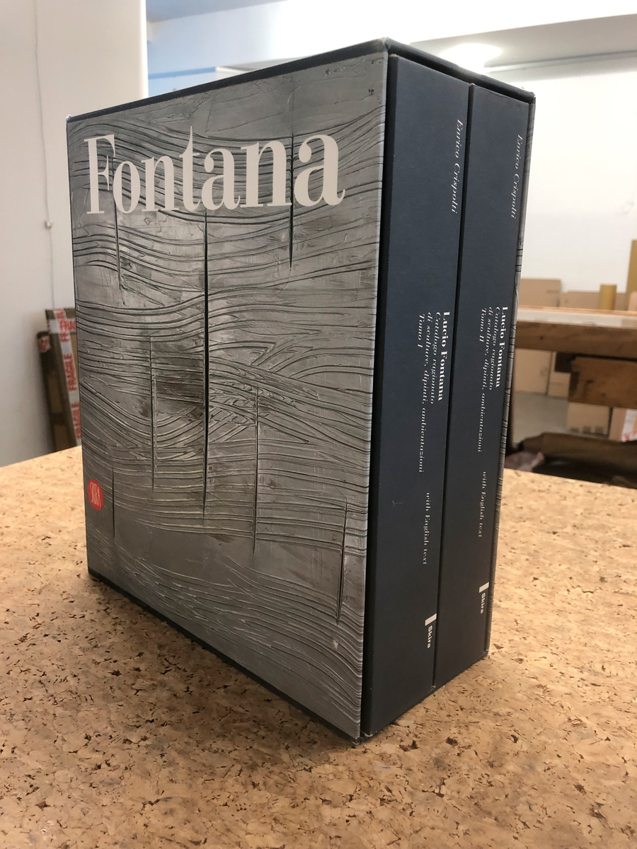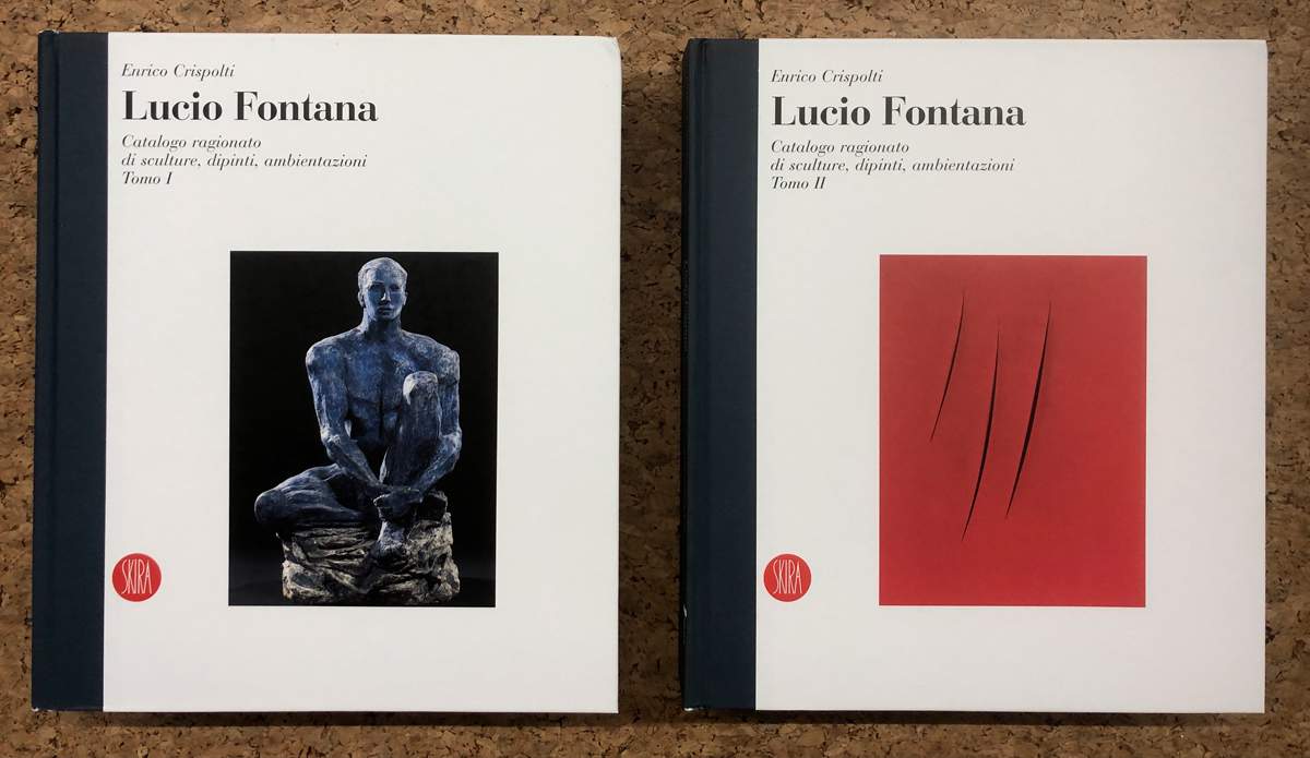 Lotto unico di 2 cataloghi ragionati di sculture, dipinti, ambientazioni di Lucio Fontana (Catalogo ragionato. Tomo primo e Catalogo ragionato. Tomo secondo), a cura di Enrico Crispolti