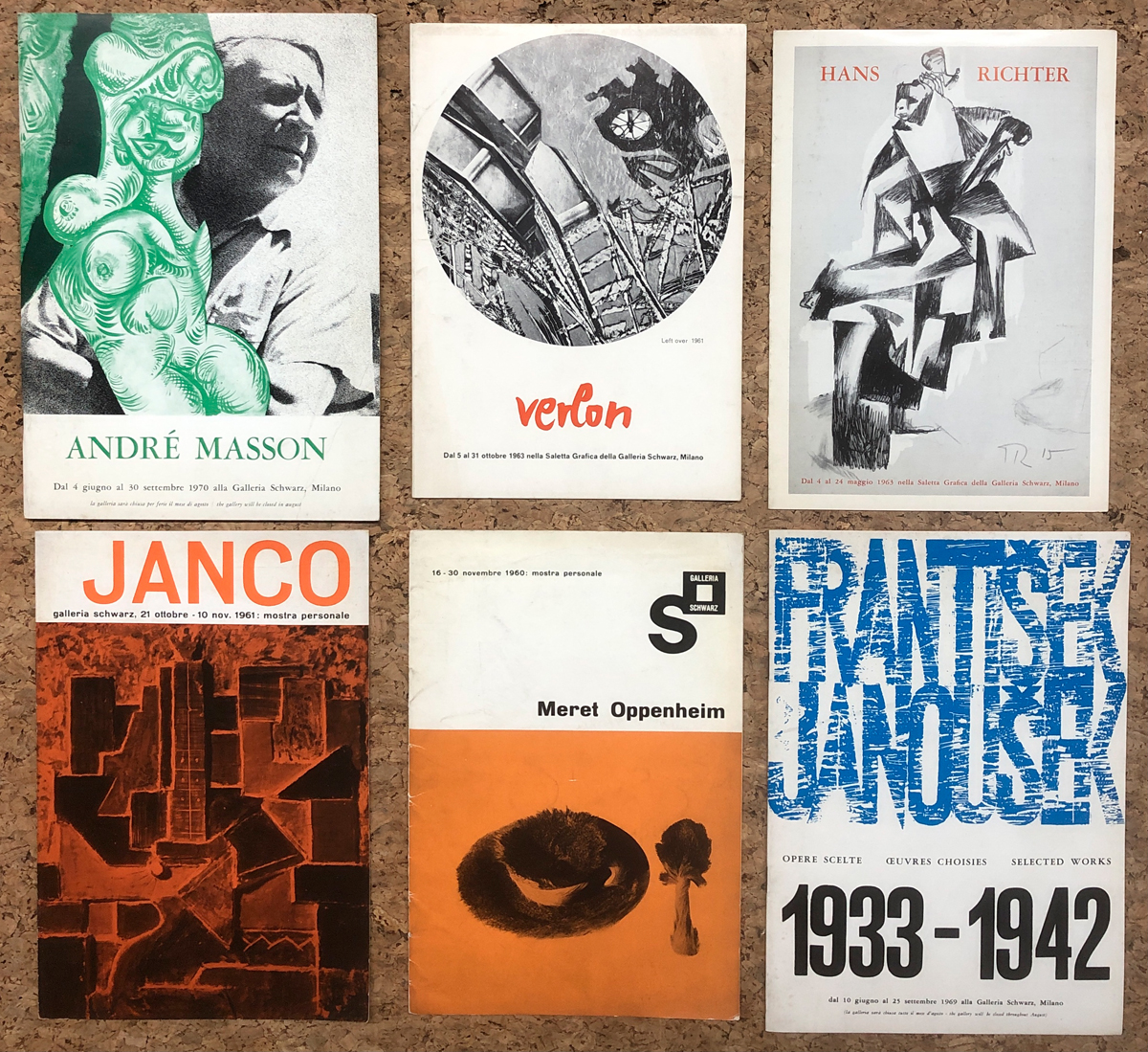 GALLERIA SCHWARZ, MILANO - Lotto unico di 5 rari cataloghi e un pieghevole editi dalla Galleria