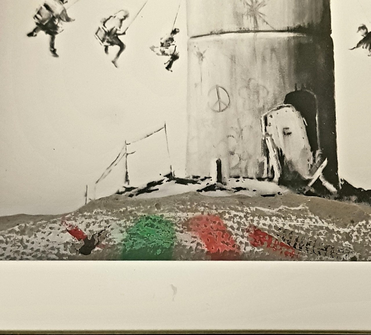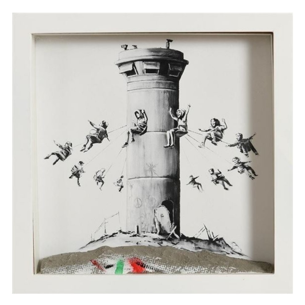 Edizione limitata, sold out. Pezzo di muro di separazione Israele/Giordania dipinto a mano, incorniciato. Certificato di autenticità. Numerato al retro. -- Limited edition, sold out. Hand-painted piece of separation wall Israel/Jordan inside the frame Certificate of authenticity. Numbered on the back